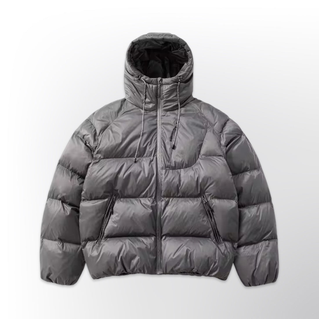 • Water-resistant metallic nylon shell — durable, high-shine grey fabric that repels light moisture and...