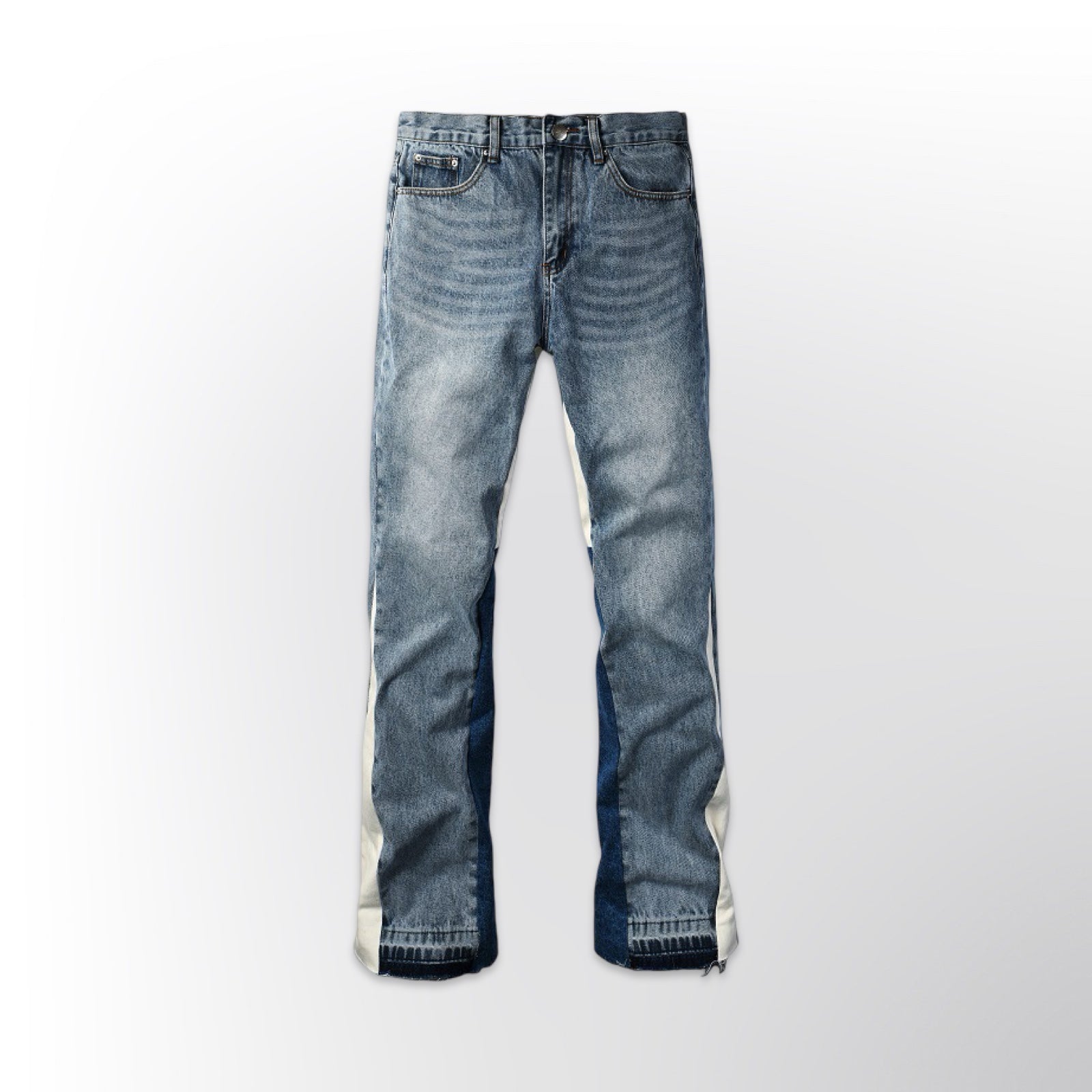 • Premium 100% cotton denim — light vintage blue base fused with rich deep indigo side panels for striking high-contrast blocking