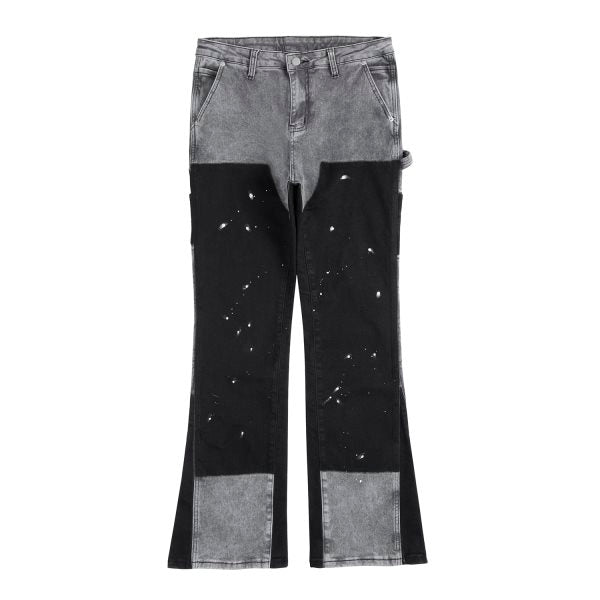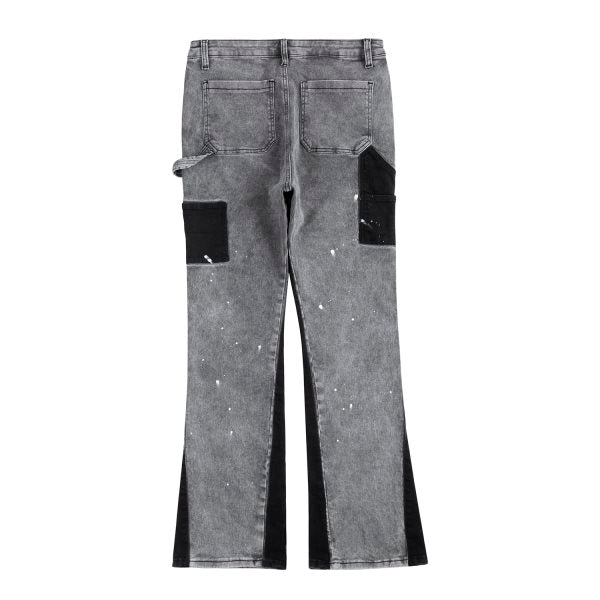 Get ready to slay the streets with our 'Nebula' Jeans! These grey flared jeans feature edgy black patches on the front of each leg, giving you the ultimate street style vibe. Made with premium quality denim, you'll rock these jeans all day and night.