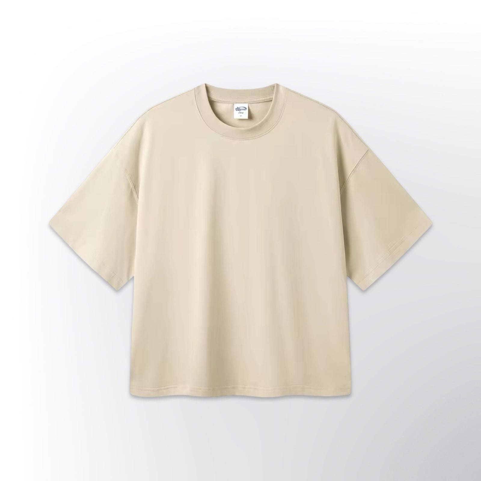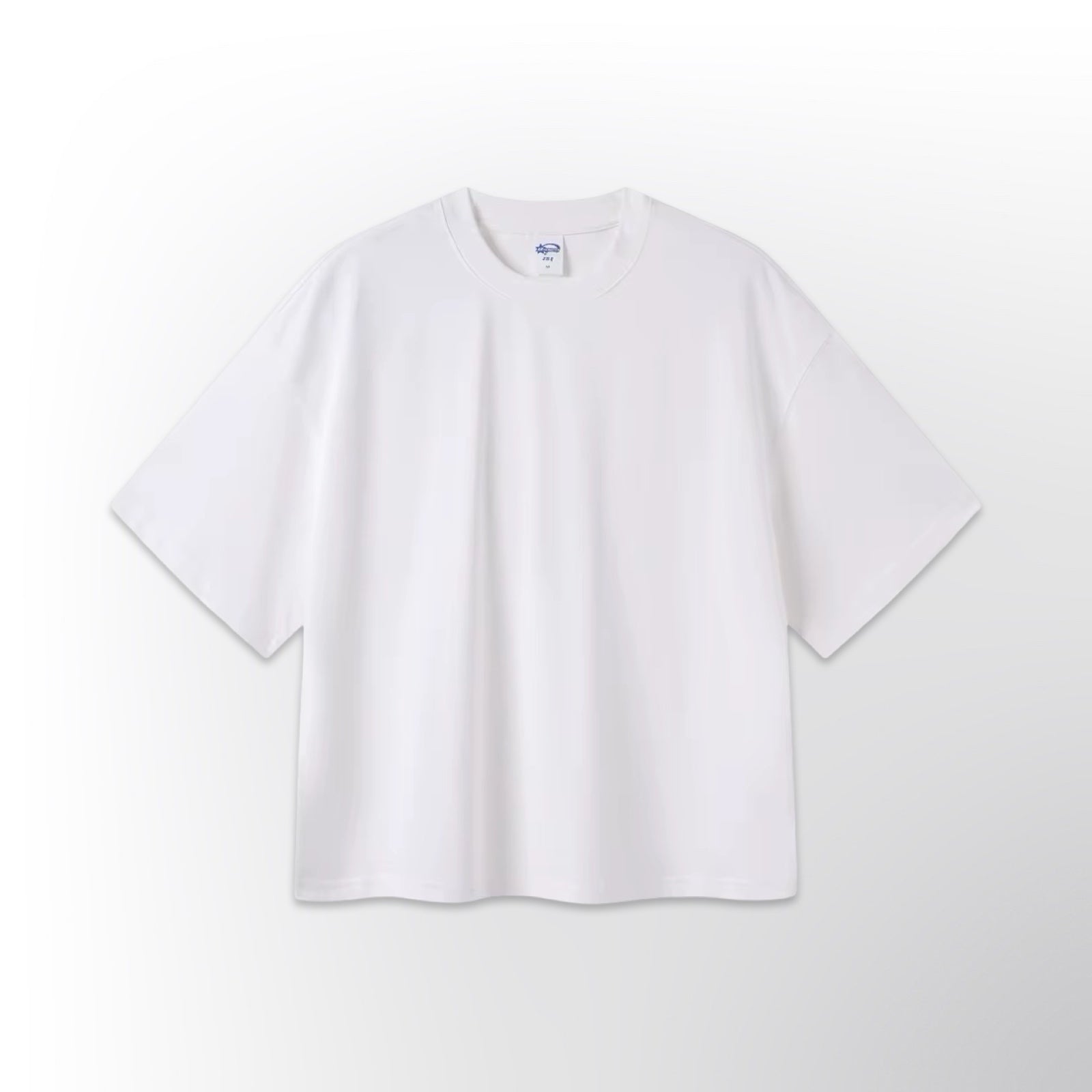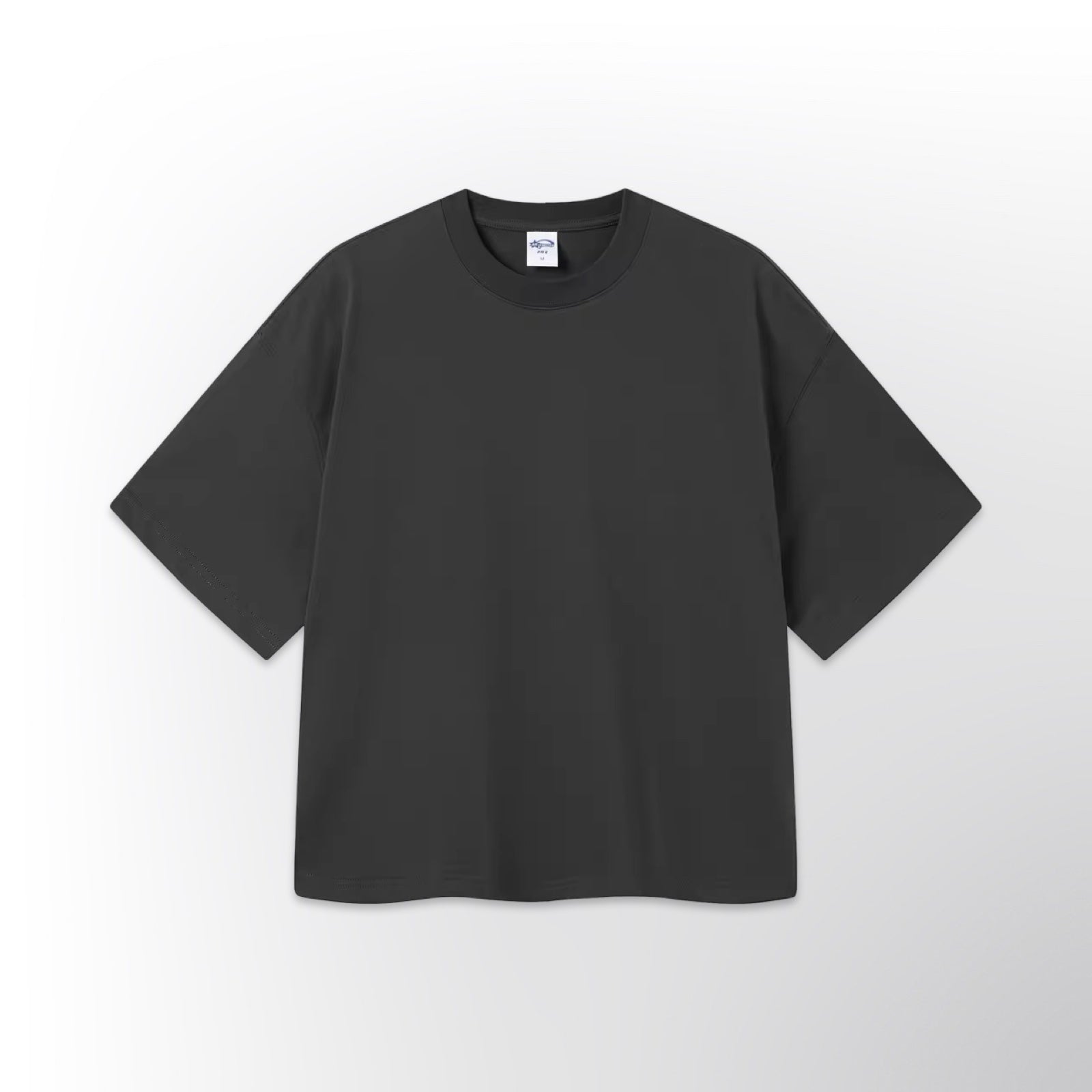 • Oversized boxy fit — generous cut with dropped shoulders and wide short sleeves for maximum street presence