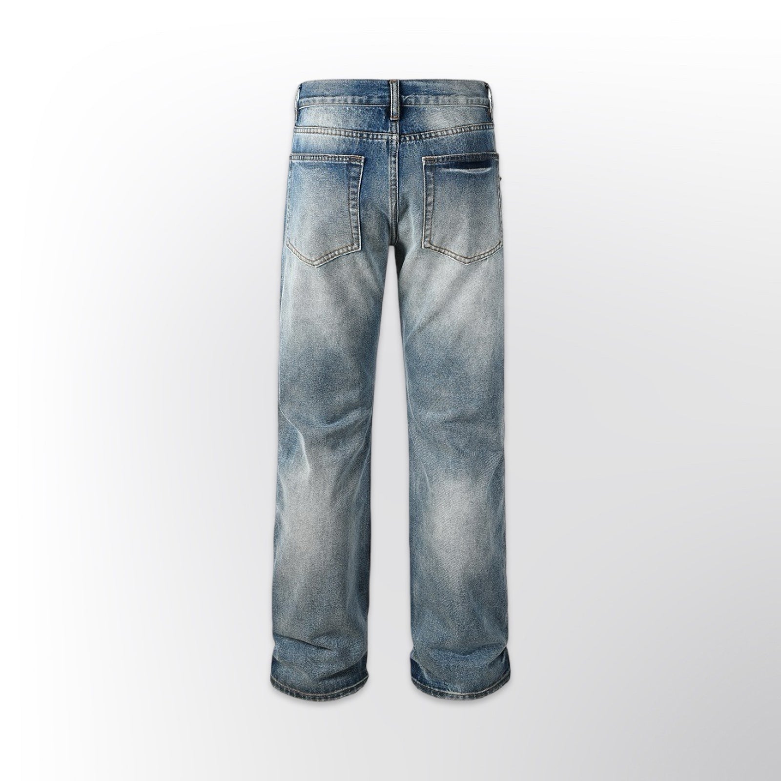 • Premium 100% cotton denim in medium vintage indigo — heavy enzyme wash with aggressive fading for instant broken-in character