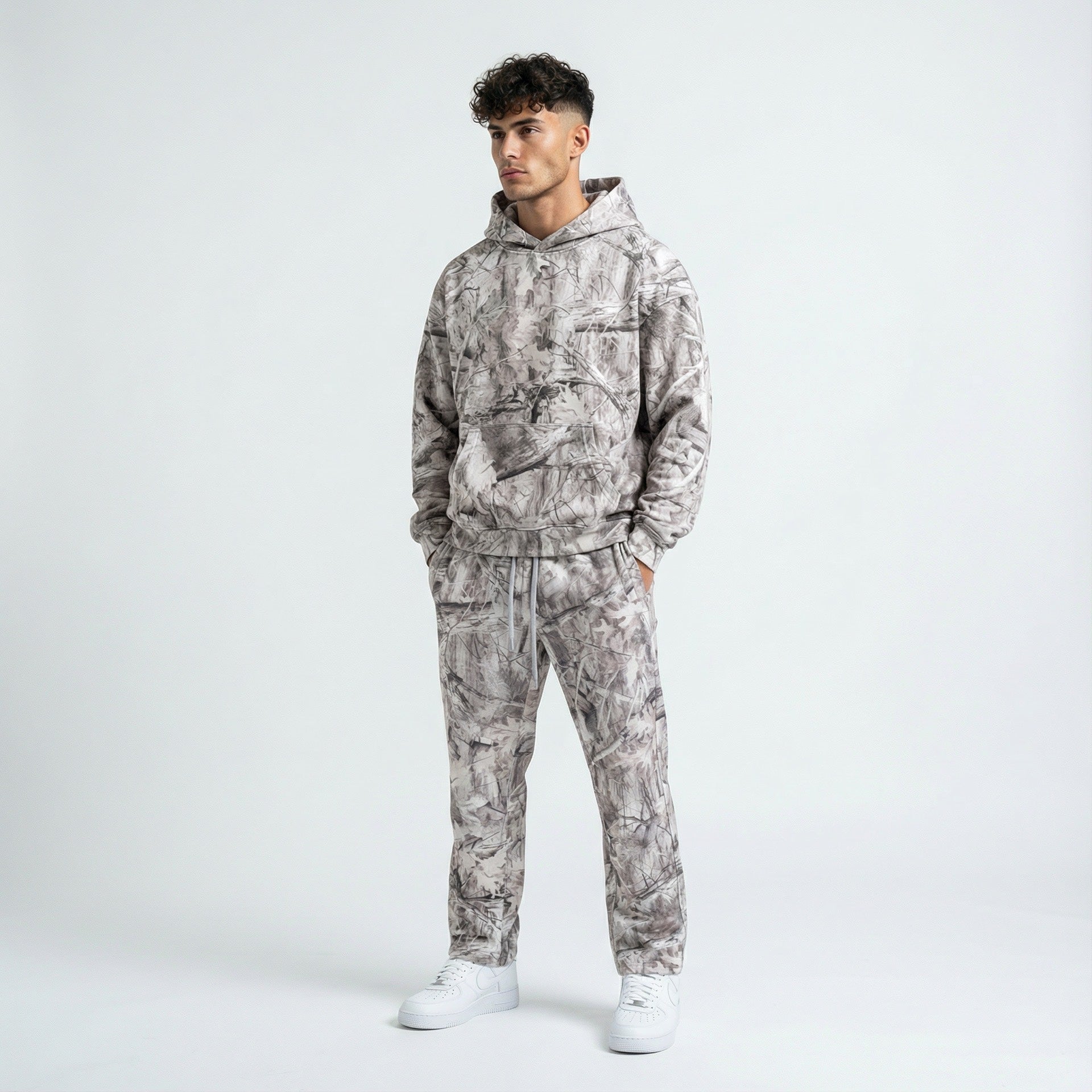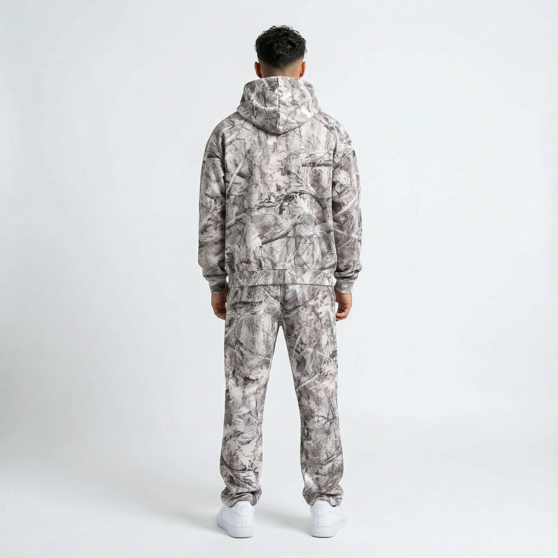 Unleash your street style with the ‘Spacewood’ Tracksuit. Made from heavy 100% cotton, this premium quality set features a cozy hoodie and stylish straight leg joggers. The real tree print adds a unique touch to this statement streetwear piece.